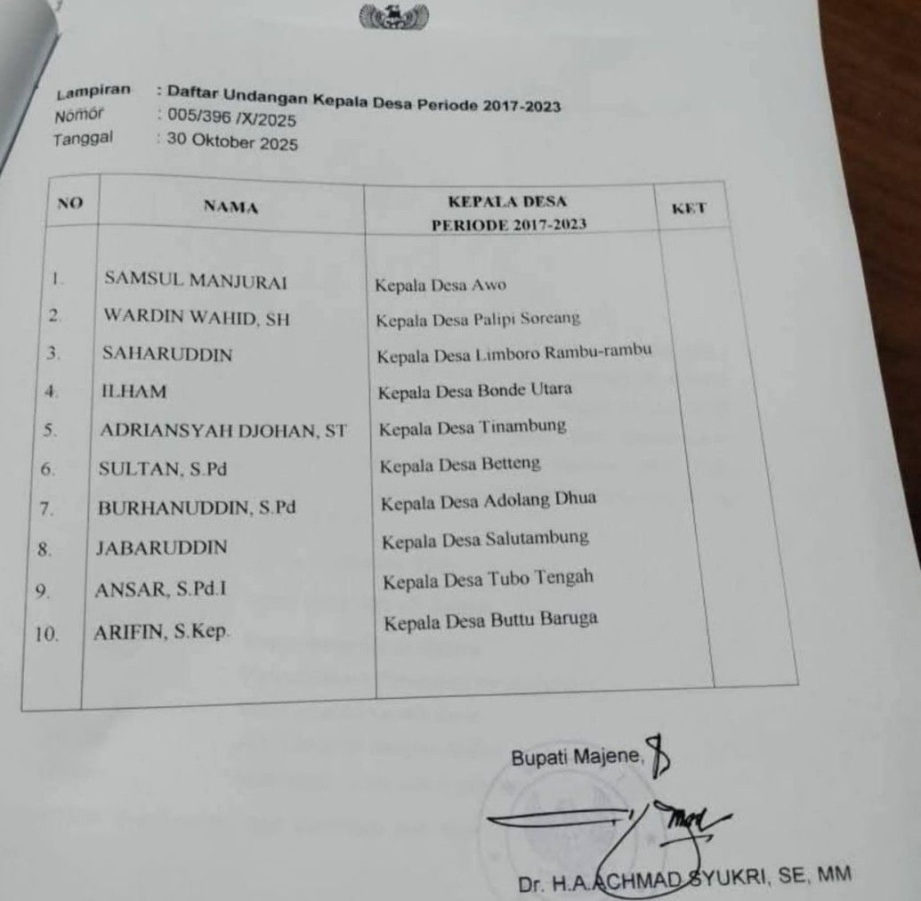Namun sayangnya masih ada beberapa kepala desa periode 2017-2023 di kabupaten Majene yang belum diperpanjang masa jabatannya.