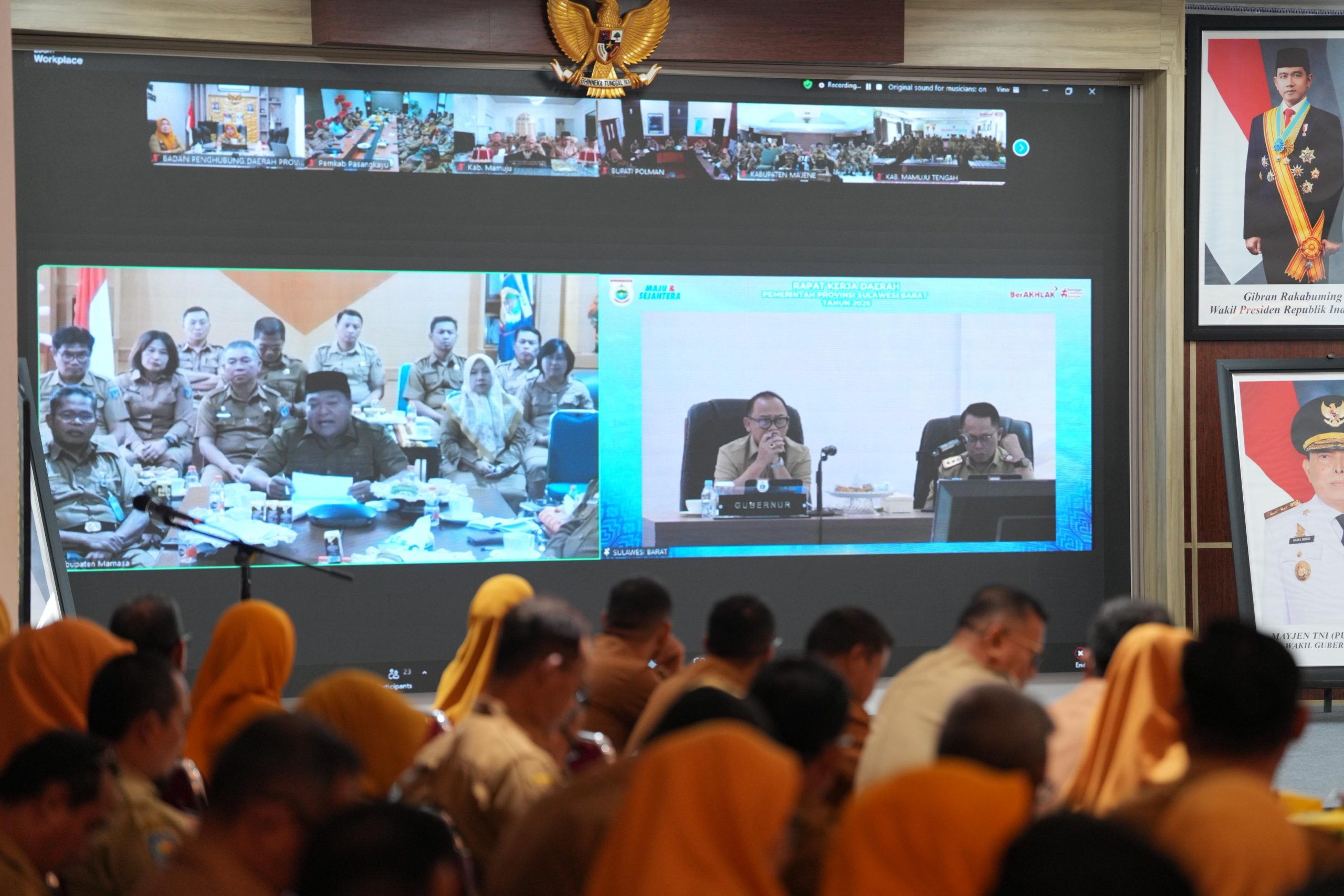 Sekretaris Daerah Sulbar, Junda Maulana, melaporkan kehadiran pemerintah kabupaten dalam forum tersebut. Pemerintah Kabupaten Mamuju dihadiri secara virtual oleh Bupati, Wakil Bupati, Sekda, dan kepala OPD. Kabupaten Majene serta Polewali Mandar dihadiri lengkap oleh Bupati, Wakil Bupati, Sekda, dan kepala OPD. Kabupaten Mamasa dihadiri Bupati, Sekda, dan kepala OPD. Kabupaten Pasangkayu dihadiri Wakil Bupati dan kepala OPD, sementara Kabupaten Mamuju Tengah dihadiri Bupati, Wakil Bupati, Sekda, dan kepala OPD.