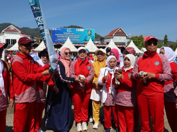Penjabat Ketua TP PKK Provinsi Sulbar Sofha Marwah Bahtiar menyampaikan, peringatan HKG PKK ke- 52 tahun mengusung tema “Bergerak Bersama PKK Mewujudkan Keluarga Sejahtera Menuju Indonesia Maju” hendaknya melekat di hati seluruh keluarga besar gerak PKK hanya bersungguh-sungguh dalam gerak PKK terkandung nafas untuk berkontribusi kepada nussa bangsa dan masyarakat