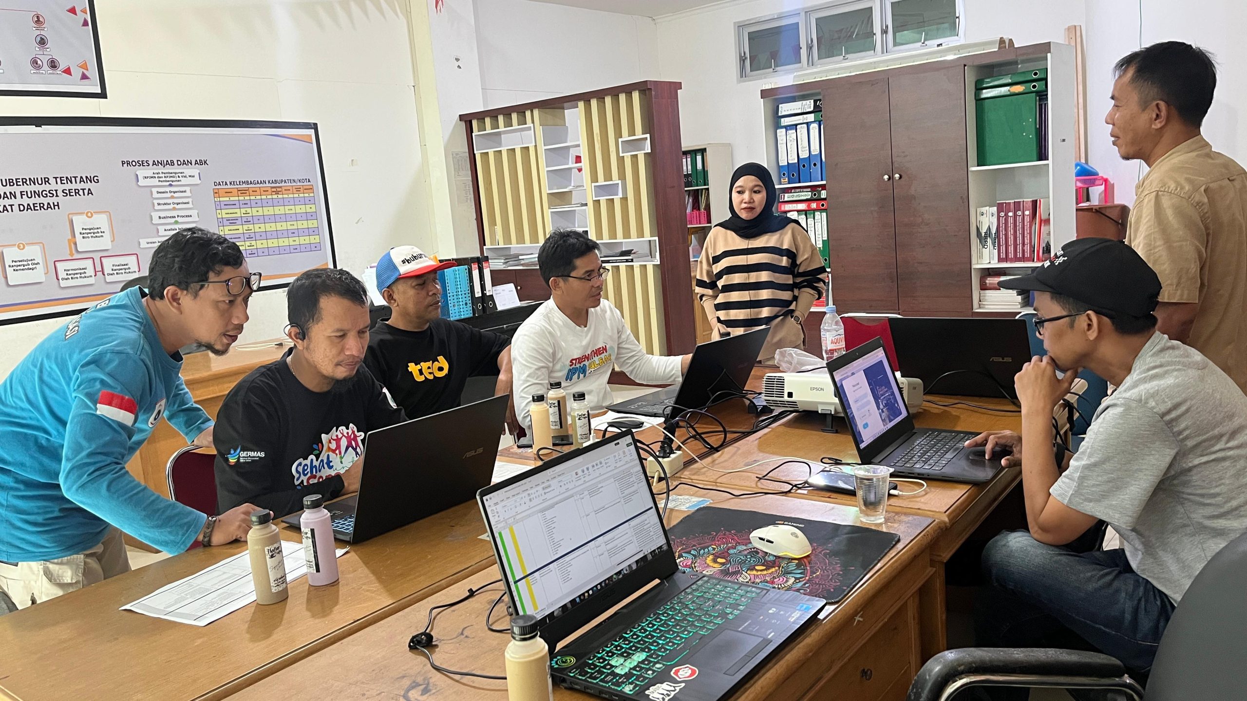 Rapat berlangsung di Ruang Bagian Kelembagaan dan Analisa Jabatan Biro Organisasi Setda Sulbar. Kegiatan ini dipimpin Plt. Kasubag Tata Usaha Biro Organisasi Setda Sulbar, Simon Sinai.