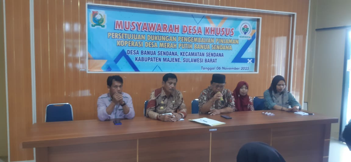 Musyawarah desa khusus, persetujuan dukungan pengembalian pinjaman Koperasi desa merah putih Banua Sendana, dilaksanakan diaula kantor desa Banua Sendana. Kamis (06/11).